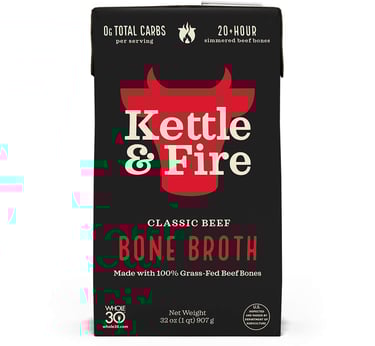 Product recommendation: Kettle & Fire Bone Broth Variety Pack - Grass-fed, organic, and shelf-stable for convenience.